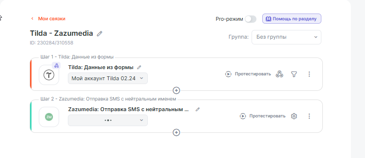 Рассмотрим простую интеграцию, которая позволит получать новые заявки из сервиса Tilda и отправлять SMS сообщения через Zazumedia.