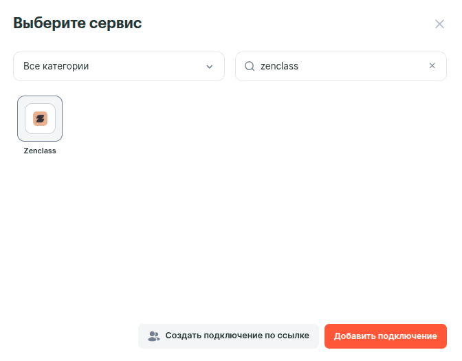 В новом окне можете воспользоваться поиском, чтобы быстро найти и выбрать сервис Zenclass. Нажимаем «Добавить подключение».