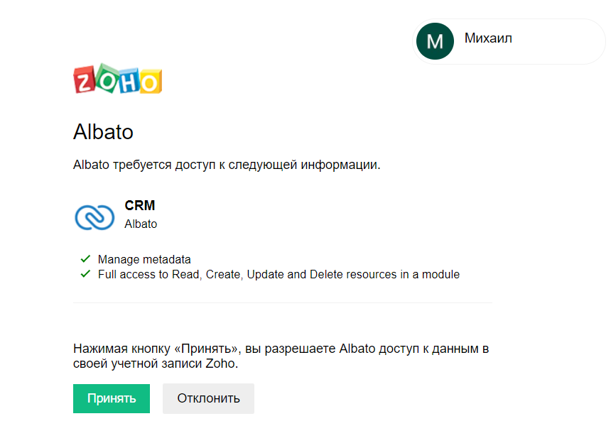 На этом шаге ваше подключение к CRM-системе Zoho готово!