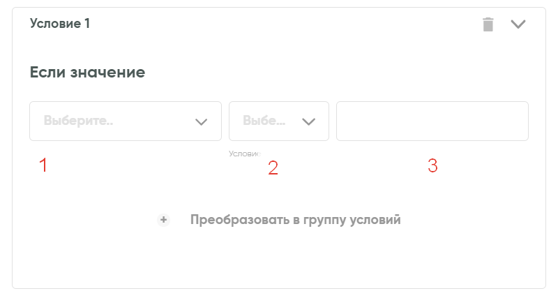 Для этого нажмите кнопку «Добавить условие» и заполните три поля: