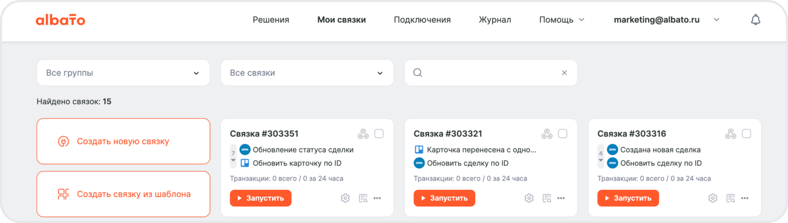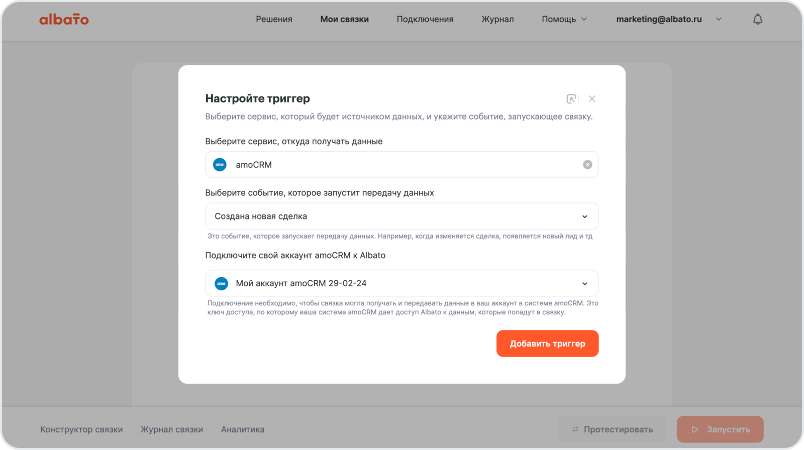 Триггеры — это изменения, после которых Albato выполнит нужные действия. Триггеры работают в режиме реального времени и по расписанию.