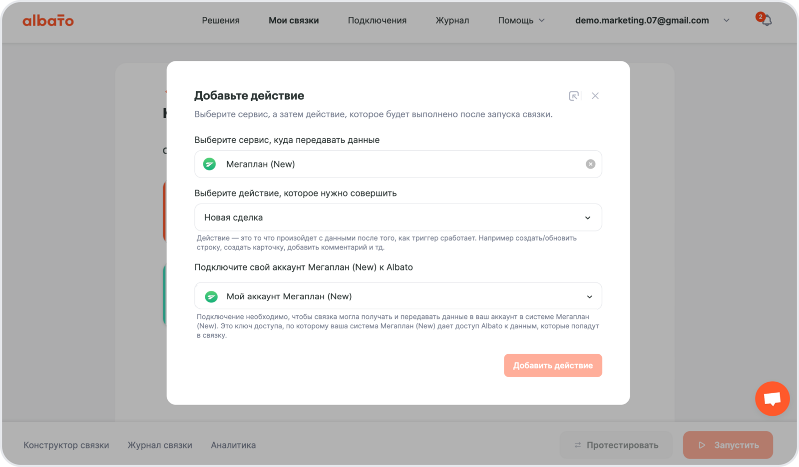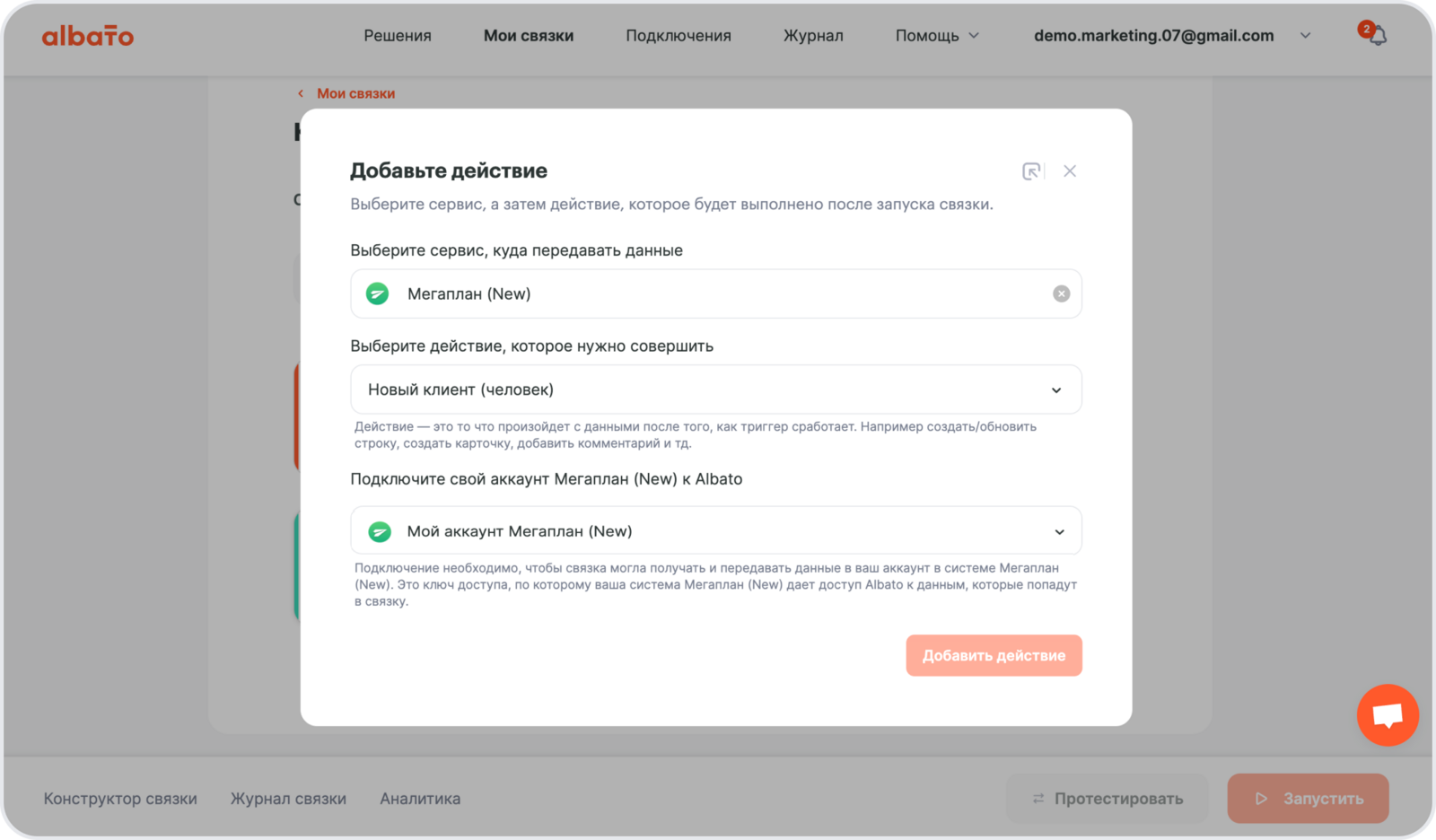 Подключение Мегаплан к Albato.