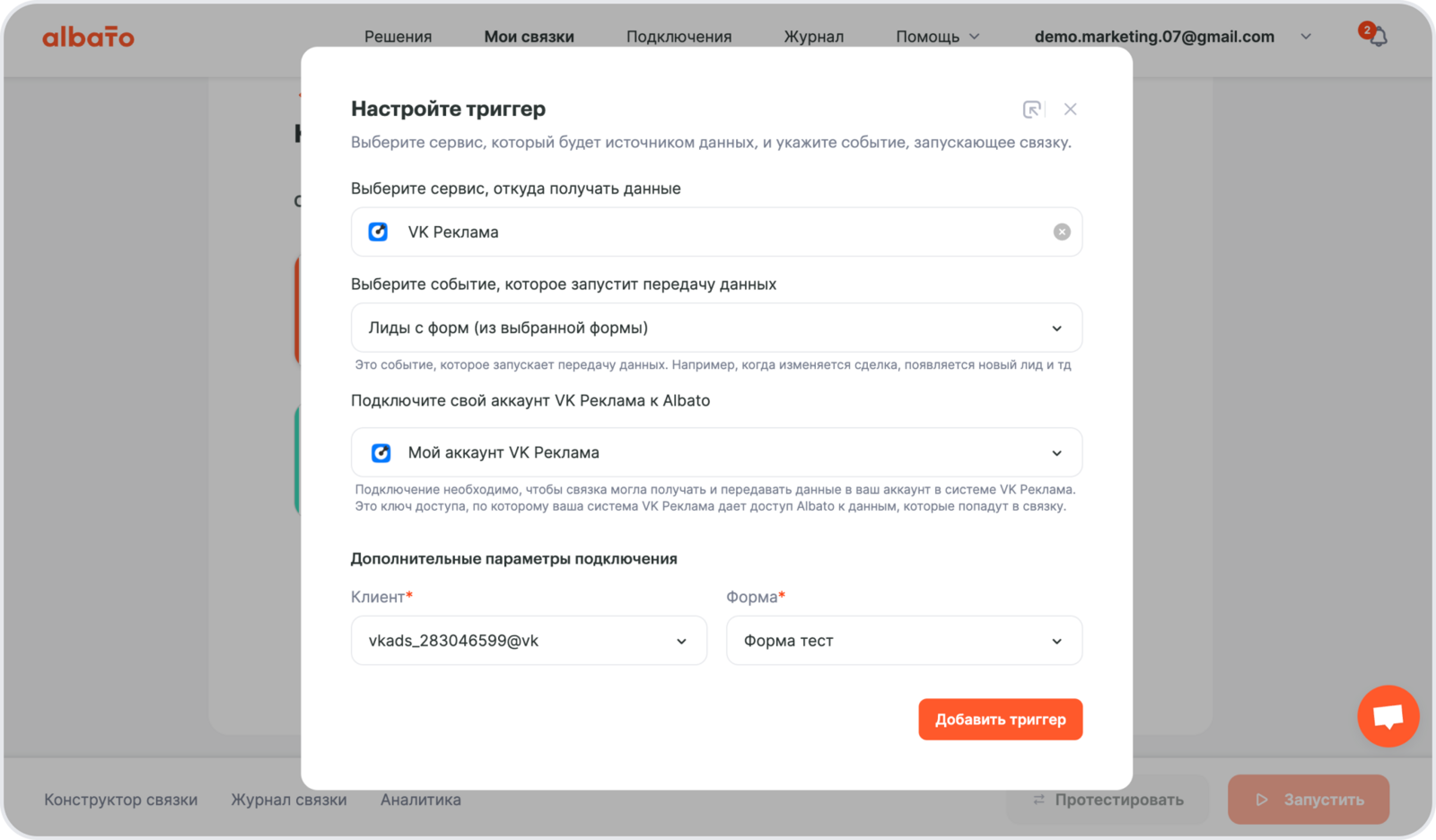 Как подключить VK Рекламу к Albato