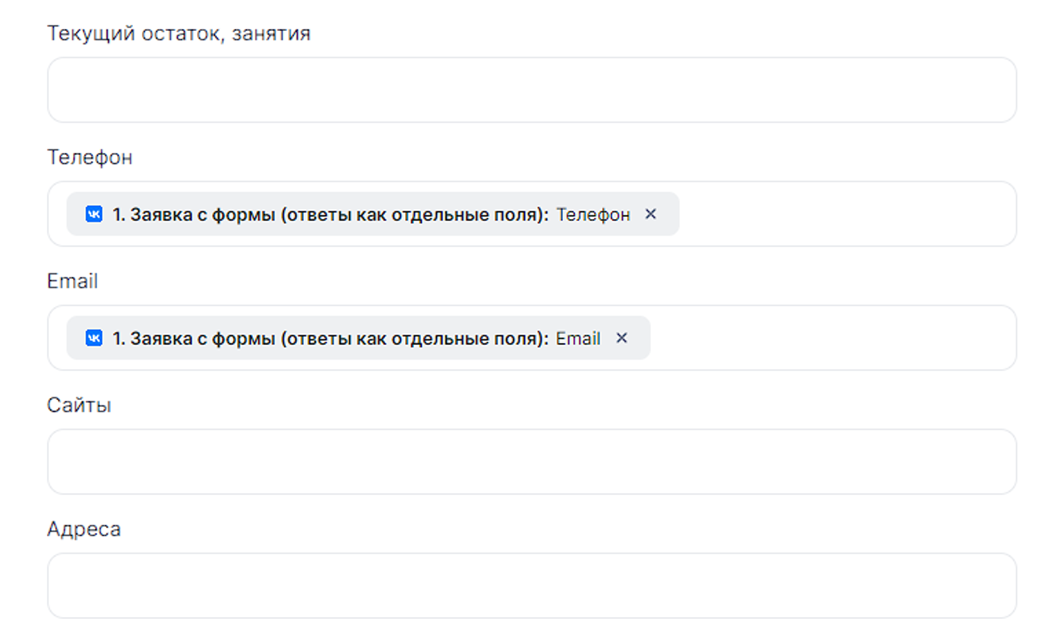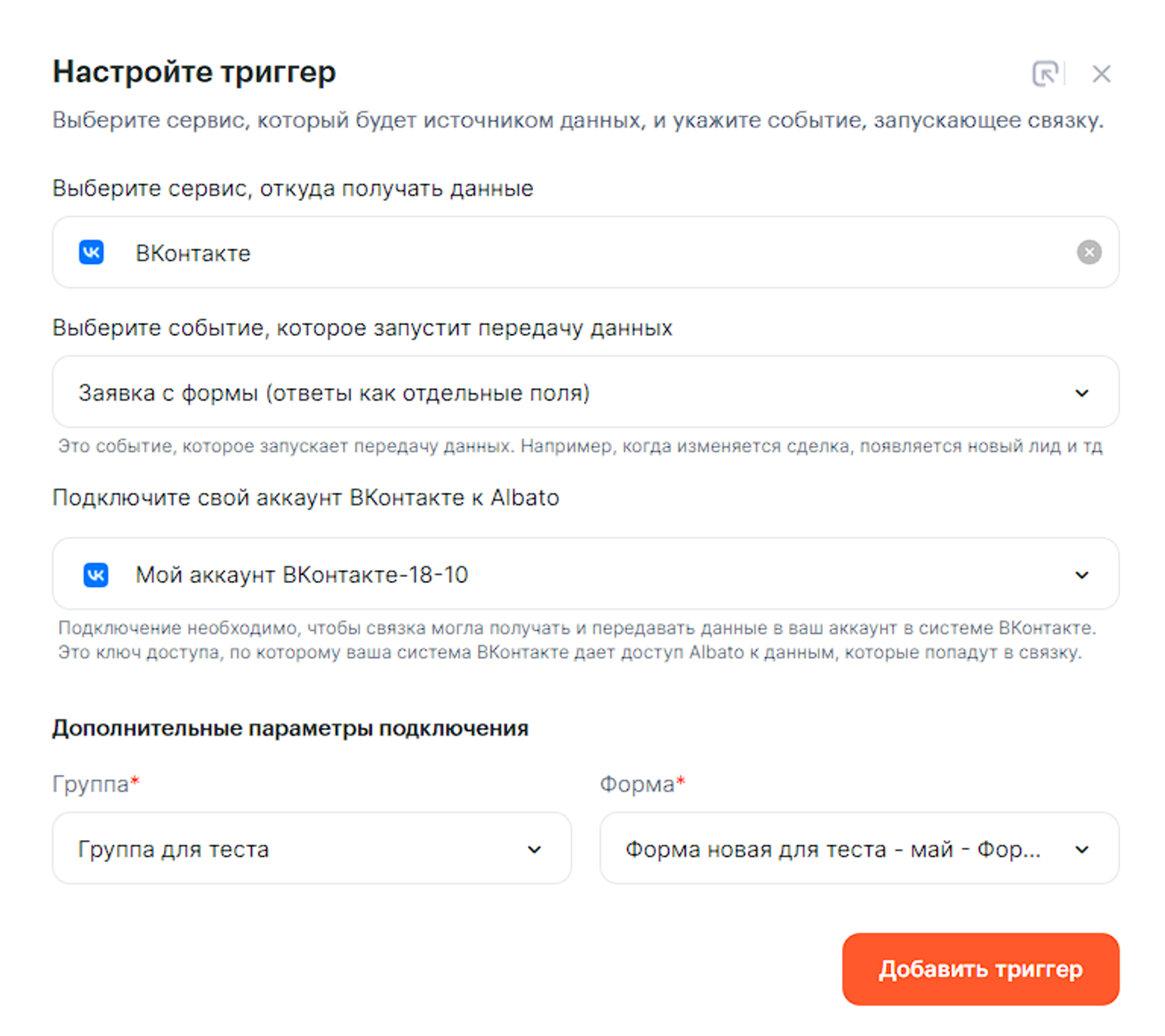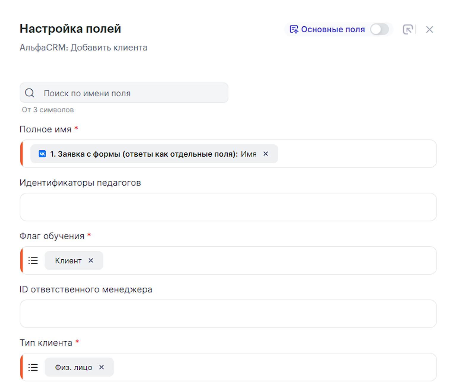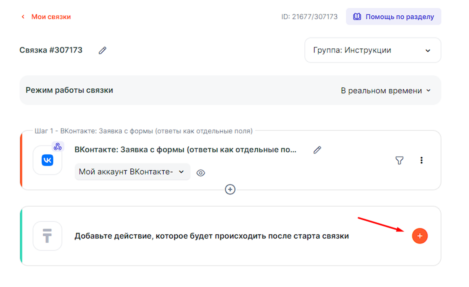 В данной инструкции рассмотрим пример создания связки, которая будет создавать нового клиента в АльфаСрм при заполнении формы в ВКонтакте.