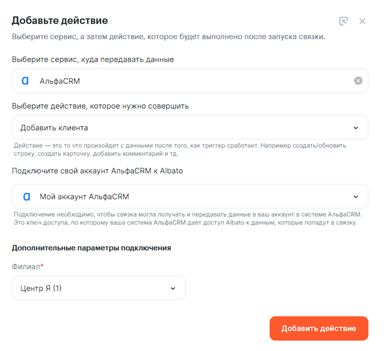 Перед созданием связки убедитесь, что оба сервиса подключены к Альбато,