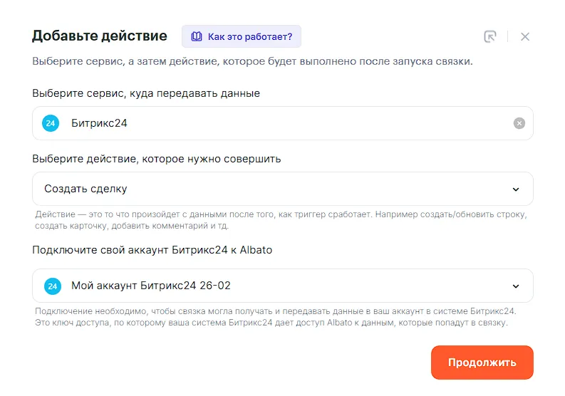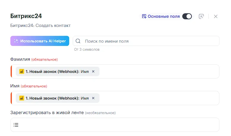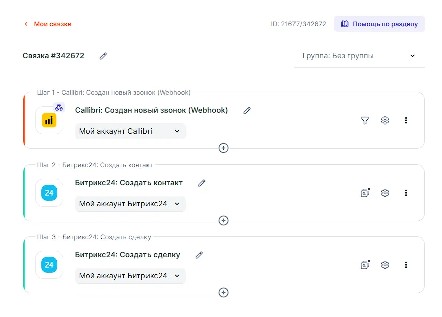 Готово! Связка создана, теперь её можно запускать: после окончания звонков в Callibri в Битрикс24 будет формироваться контакт и сделка к нему, либо будут обновляться существующие.