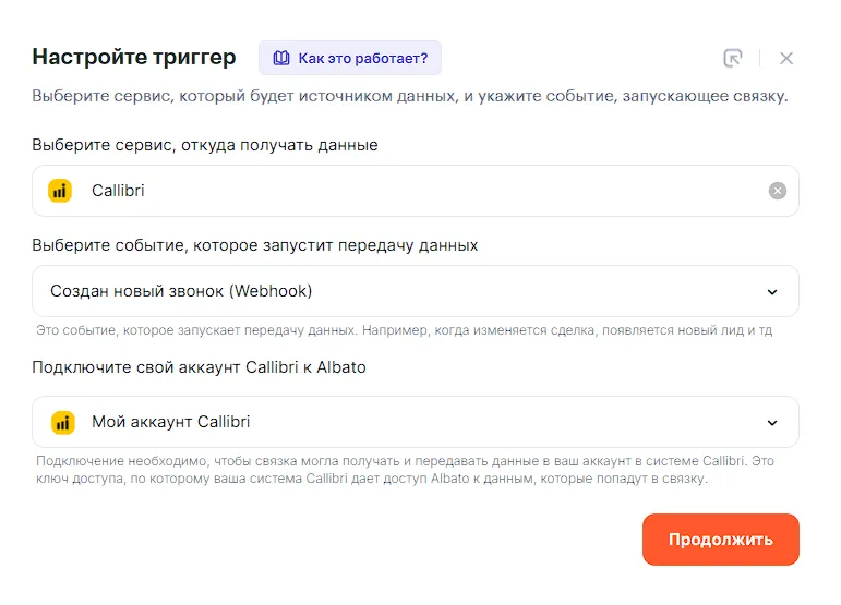 Рассмотрим на примере создание связки по событию “Новый звонок”.