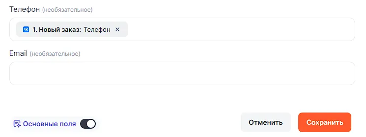 - ID контакта/сделки — параметр ID сделки из шага 3