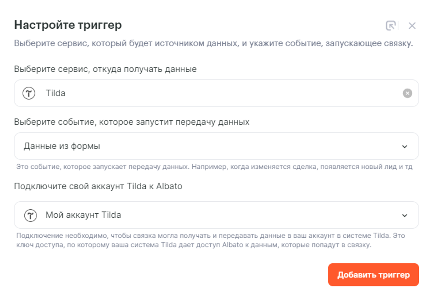 Перед созданием связки убедитесь, что оба сервиса подключены к Альбато.