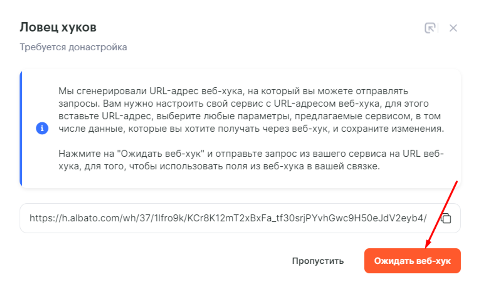 Далее запускаем ловец вебхуков: