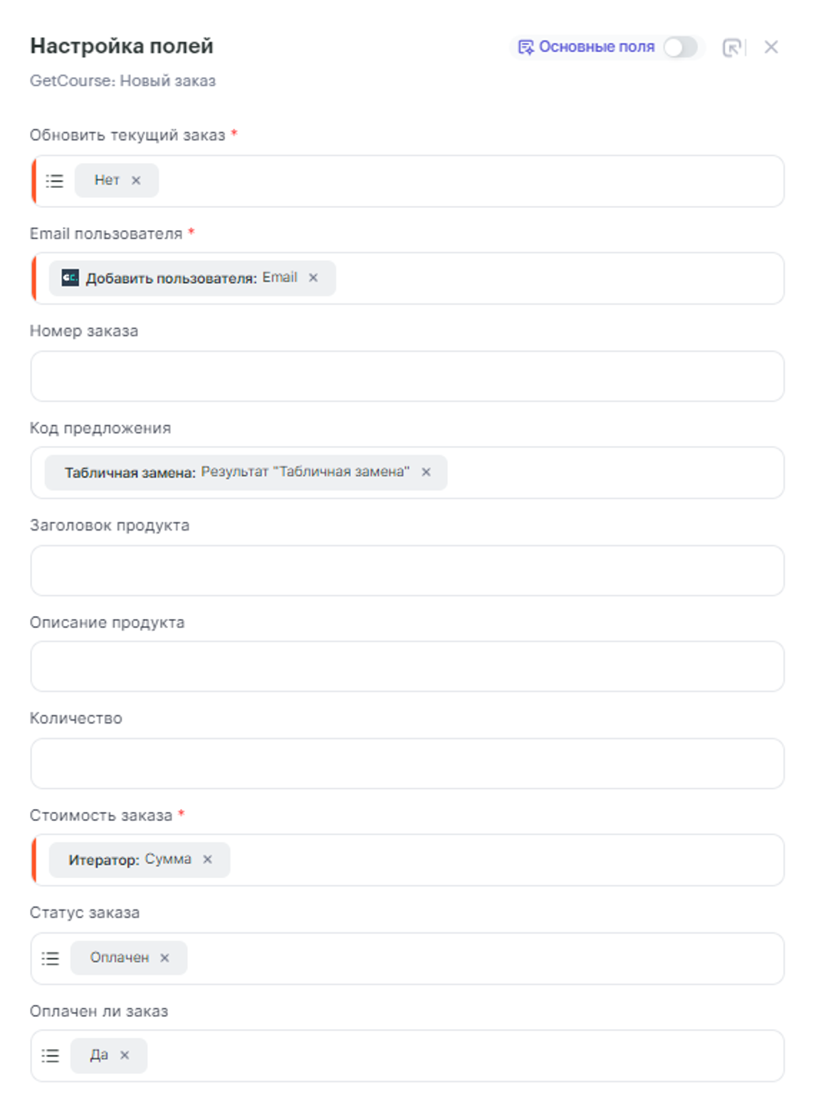 Рассмотри пример создания связки, которая будет создавать заказ в GetCourse при оплате заказа на стороне Tilda.