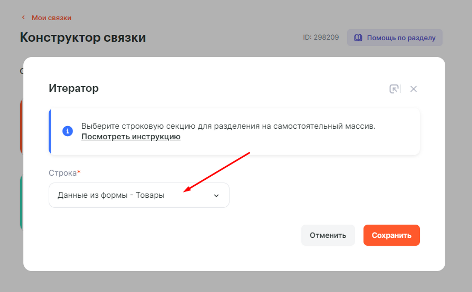 Товары приходят из Tilda массовом, а Getcourse так принимать не может, поэтому воспользуемся инструментом Итератор: