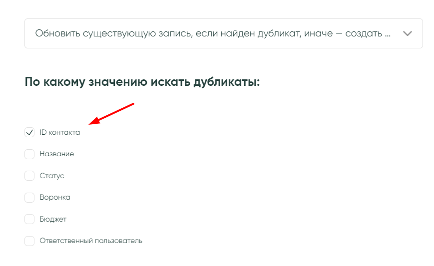 Например, нам нужна для каждого «Контакта» только одна «Сделка» и все новые данные нужно добавлять к ней: