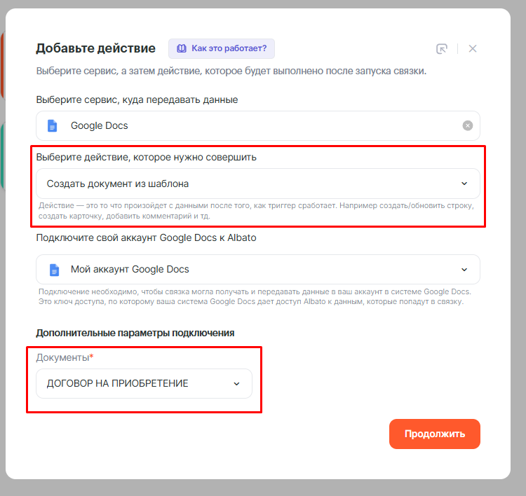 Подключение Google Docs к Albato