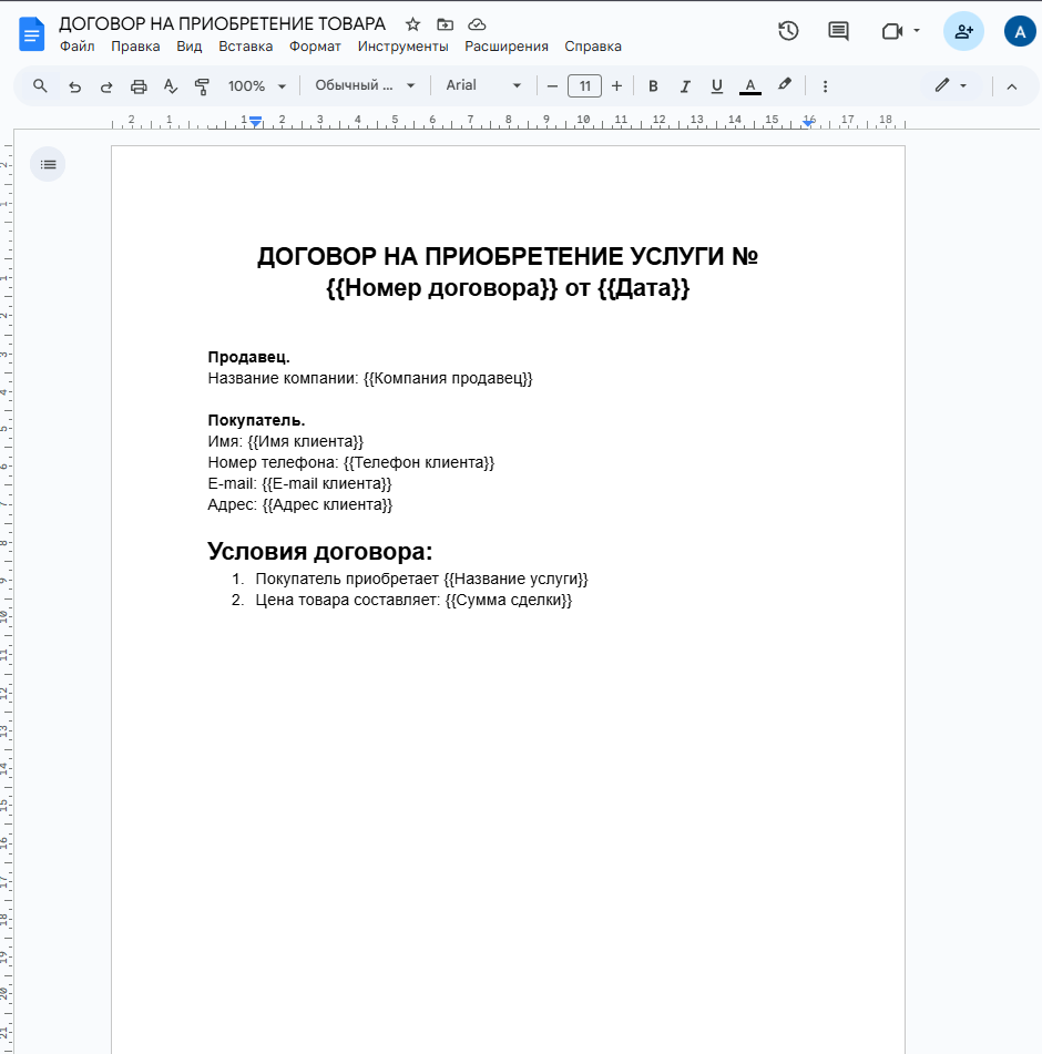 В данной инструкции рассмотрим пример связки, которая будет создавать документ из шаблона Google Docs, заполняя его данными полученными из Контакта и Сделки из Битрикс24.
