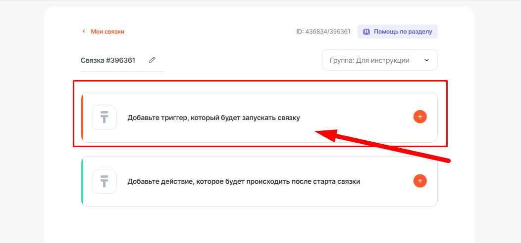 Нажимаем в связке на Добавьте триггер, который будет запускать связку
